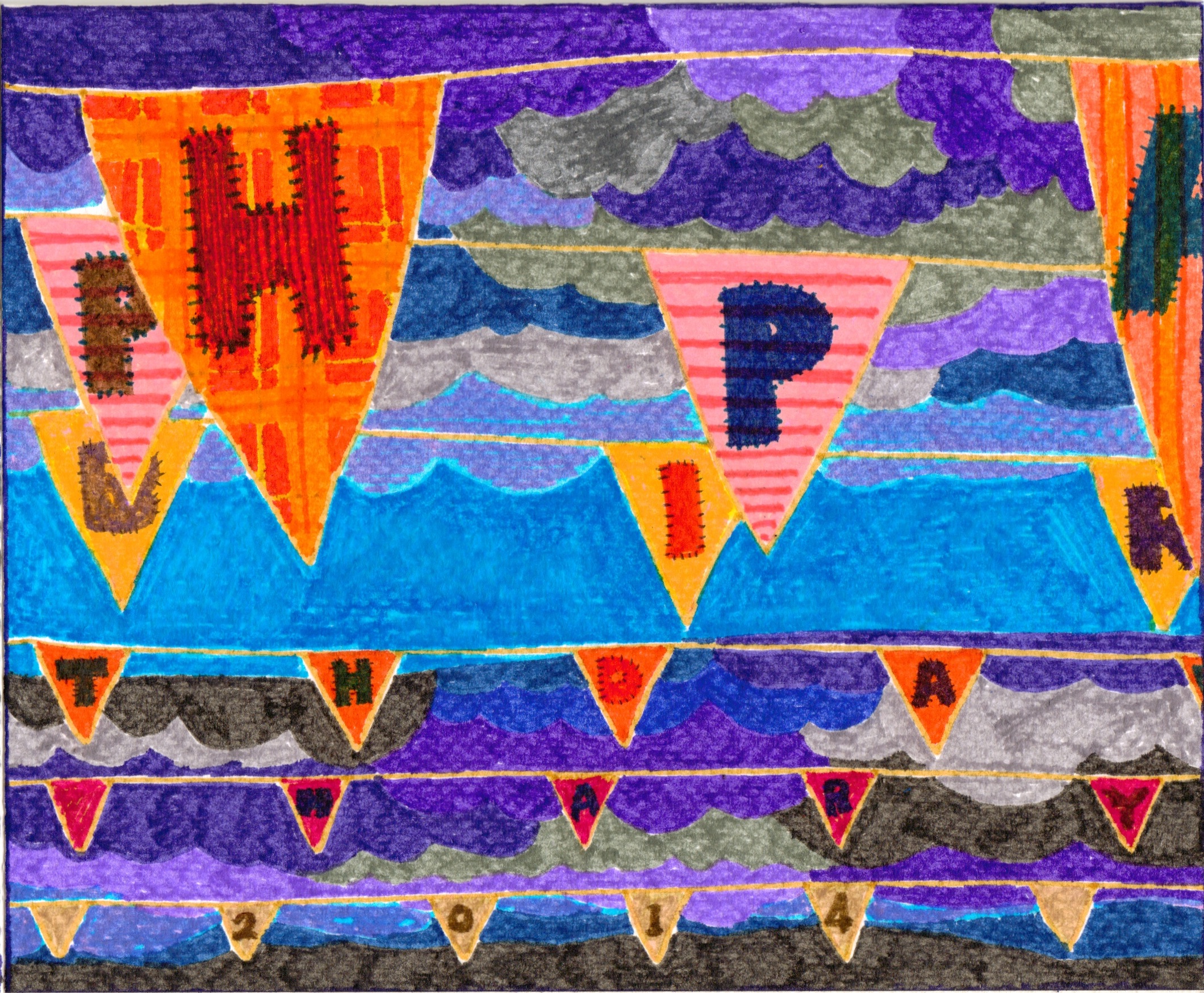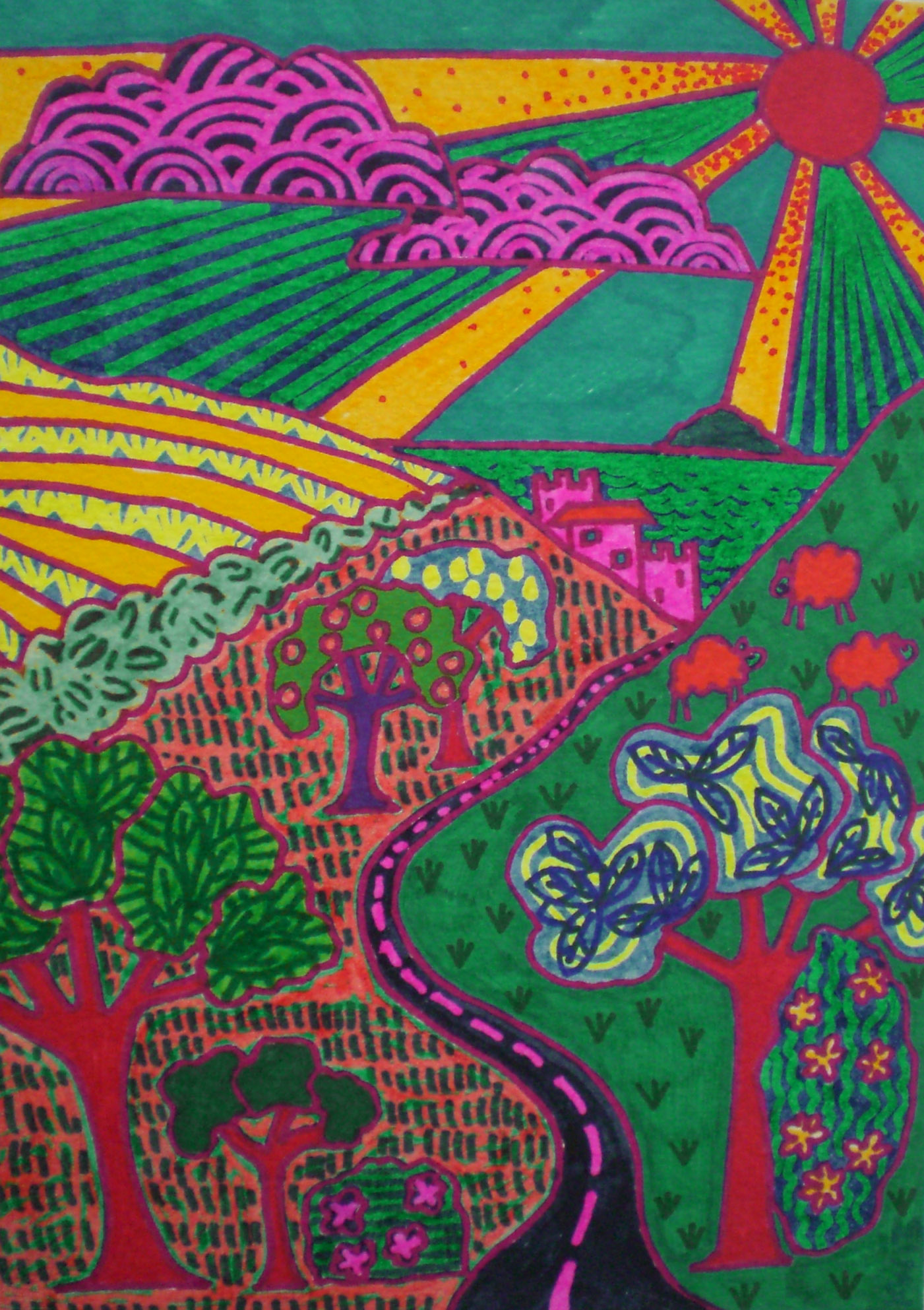 I just realised I haven’t put anything up for a while. But I have since the last blog been using felt tips. I bought some for a charity do I helped to organise to keep kids entertained, they weren’t interested, but I got left with lots of felts. Ooooh the colours, oooo felts that change colour with application of a magic felt… (dribble, drool etc.). I also founds some posh felts at Oxfam for a knock down price, so now I’ve got hundreds of them, and Grayson Perry made a passing remark about getting his felts out to help him think about new work, and if it’s good enough for him…anyway there’s more but here’s a few – I haven’t bought a birthday card in a while now!