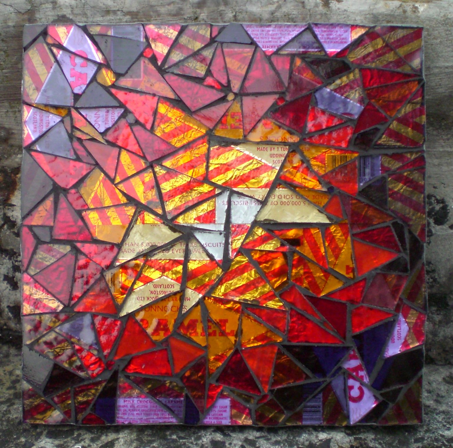 Well, these have been popular, I sold two and gave the others as presents for Christmas. Tunnocks, for those who eschew chocolate, are Scotland’s finest naughty tea time treats, but better than that have the least fiddled with packaging of all confectionery, ideal for retro kookiness in the kitchen. These are ‘Teacake’ and ‘Caramel’ wrappers under cut glass. Yum, both of them, honestly, get some. If you’d like a Tunnocks based trivet for a present for someone please let me know, 6″ x 6″ £40 and larger ones upwards of that.