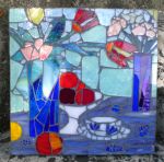 I’ve been a bit in love with mosaics ever since I first met them. It’s the mixture of colour, pattern, functionality, and long life. I appreciate it that something as fragile as glass is actually something you can stand a hot pan on, or leave it out in the weather, and not worry about. So useful, so everyday, so satisfying to make. Please click on the images to find out more.